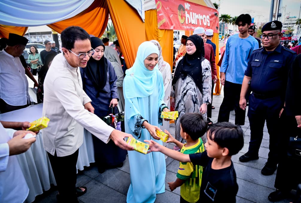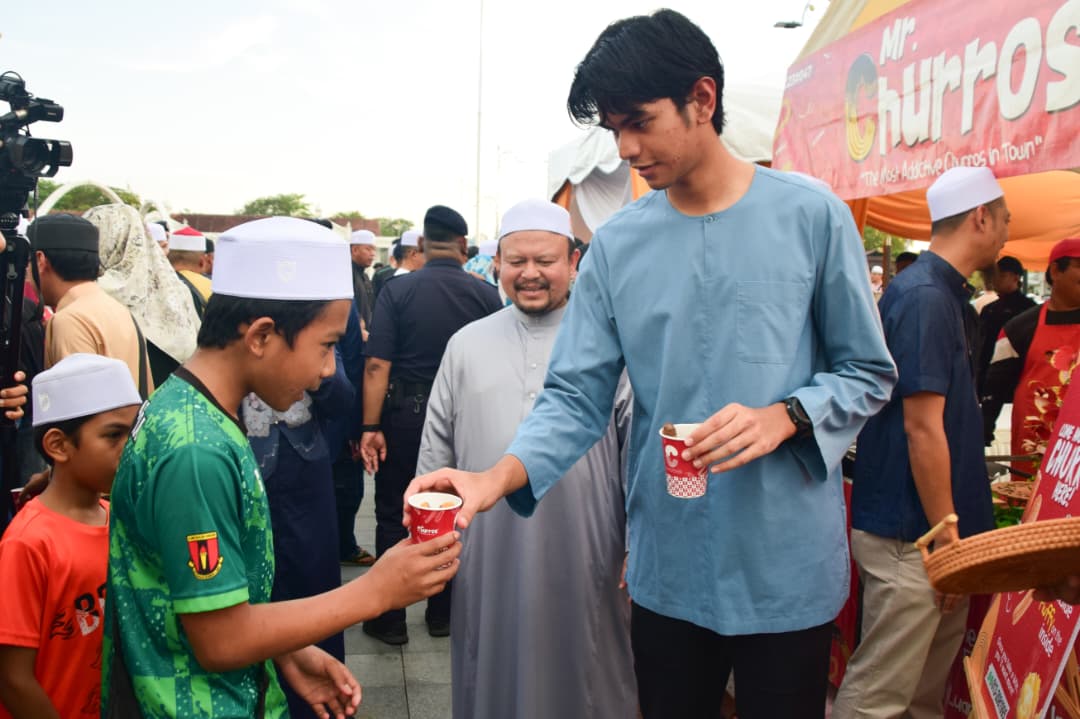Baginda Tuanku Raja Muda Kedah dan keluarga kemudian perkenan menyantuni pengunjung yang hadir di Dataran Medan Bandar dengan menyampaikan sumbangan makanan berbuka puasa berupa set nasi berlauk dan snek “churros” di reruai yang didirikan.