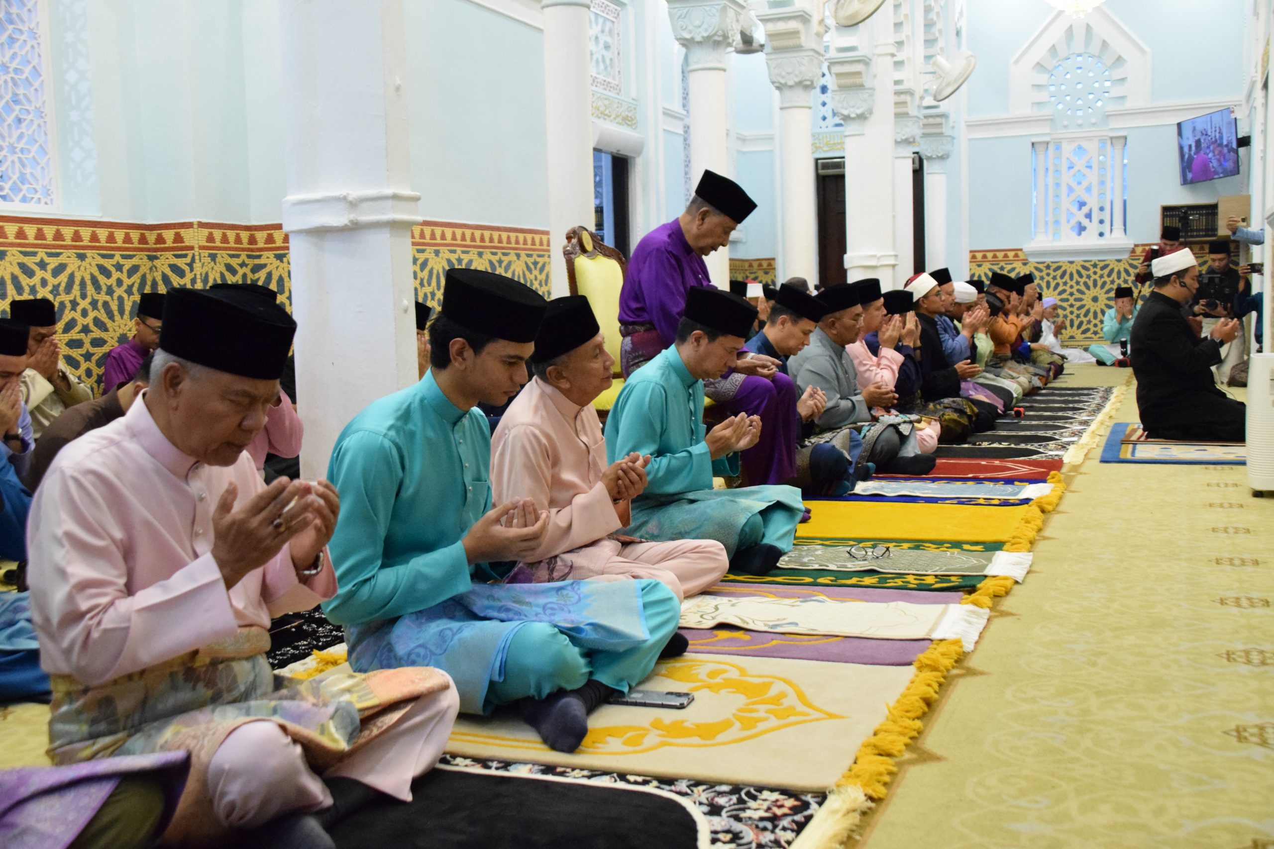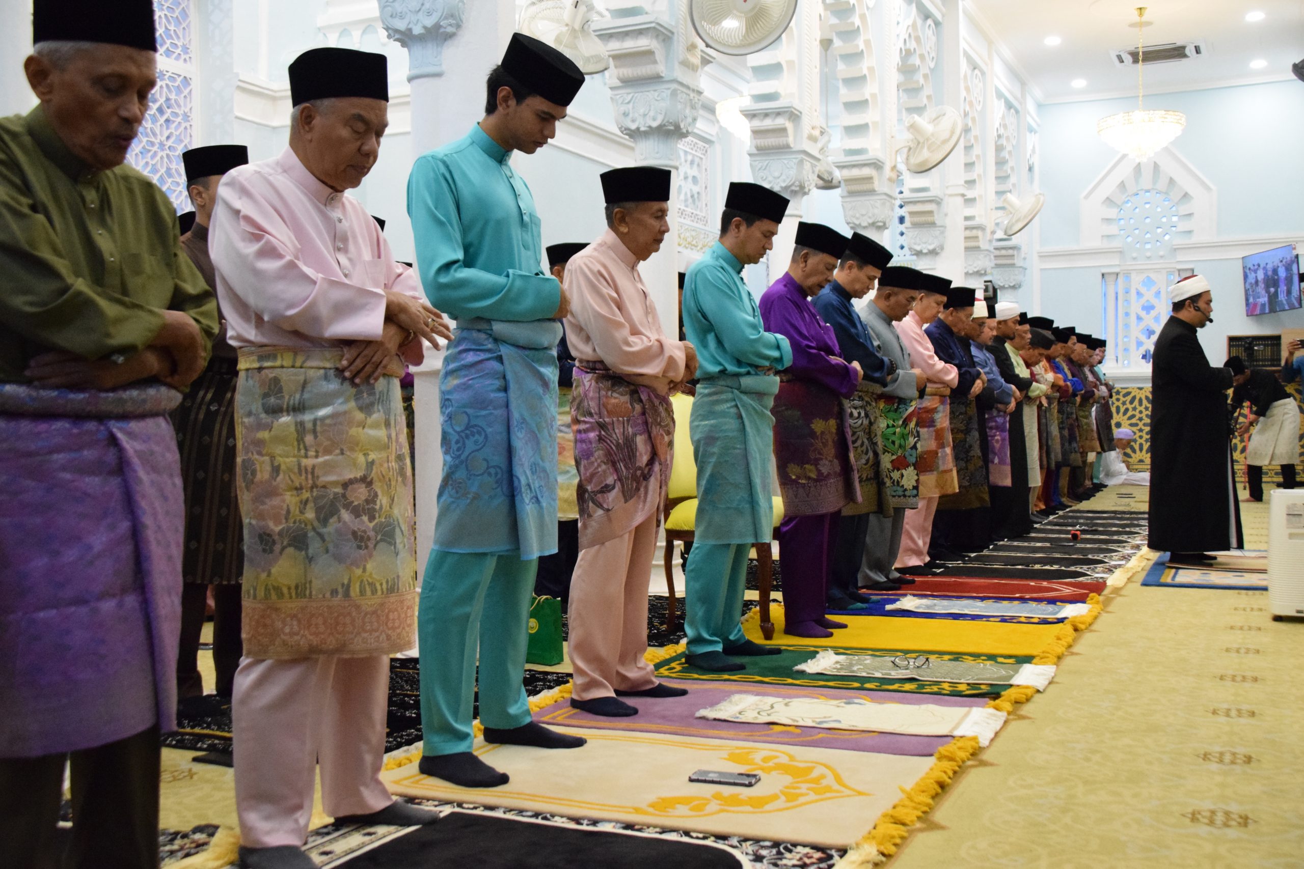 Baginda Tuanku Sultan bersama yang lain menunaikan solat sunat Hari Raya Aidilfitri yang diimamkan oleh Imam Besar Masjid Zahir, dan seterusnya diteruskan dengan bacaan khutbah Hari Raya Aidilfitri.